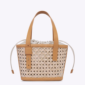 Colore : Sahara Materiale Esterno : Midollino, pelle e lino Materiale Interno : Fodera in gros grain Accessori : Metallo oro Dimensioni : 15x18,5x7,5 cm Peso : 0,55 kg Lunghezza tracolla: 51,5 cm